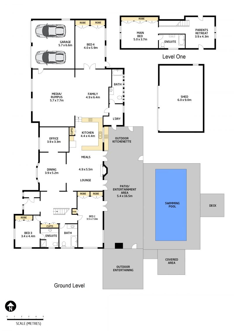 * North-facing aspect to rear, inground pool and spa, pool hut and sundeck